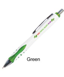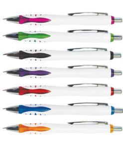 The Synergy Ballpen is the perfect promotional ballpen for full colour digital print! A bright, white ballpen with a distinctive design. It has translucent coloured trim for an eye-catching look and a shiny chrome nose and clip. Supplied with black ink. Bestselling white barrelled plastic ballpen. Large branding area. Product test information: MSDS available for ink.