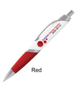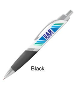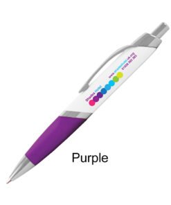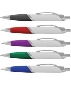 The Ellipse Ballpen is the perfect promotional ballpen for full colour digital print! Contoured plastic ballpen with white barrel. Large branding area, ideal for full colour digital print. Coloured finger grip and chrome nose and clip. Black ink. The contours of the Ellipse Ballpen make this the perfect choice for displaying your logo. MSDS: yes, for ink.
